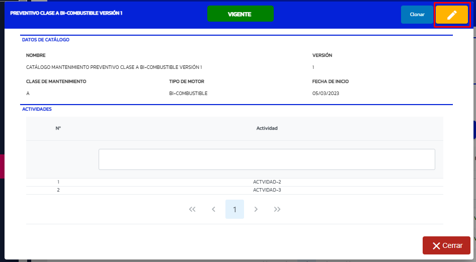 Editar catálogo de actividades