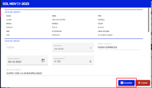 Nos mostrará un modal con los datos de la solicitud de movilidad, en el cual seleccionaremos la opción