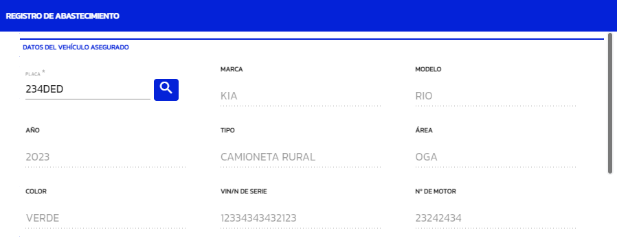 El presente manual detalla el procedimiento para registrar el abastecimiento de combustible de un vehículo.