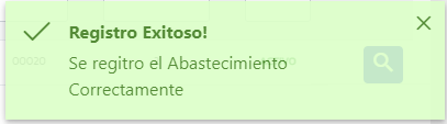 Finalmente, se obtiene un mensaje de alerta y el registro del abastecimiento en la bandeja abastecimiento.